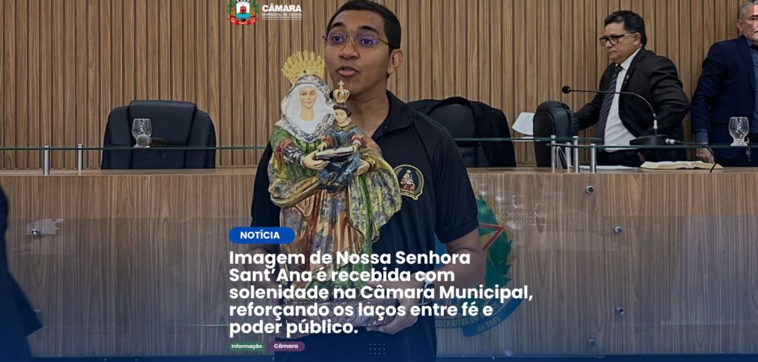 A Câmara Municipal de Óbidos viveu um momento de profunda fé e devoção nesta segunda-feira (07), ao receber a visita da imagem de Nossa Senhora Sant’Ana, padroeira do município. A passagem da santa pela Casa de Leis ocorreu antes do início da Sessão Ordinária, reunindo vereadores, servidores e um grande número de fiéis na galeria.