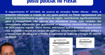 O requerimento N° 427/2025, de autoria do vereador Rylder Afonso – (PSD), A presente solicitação a criação de um posto…
