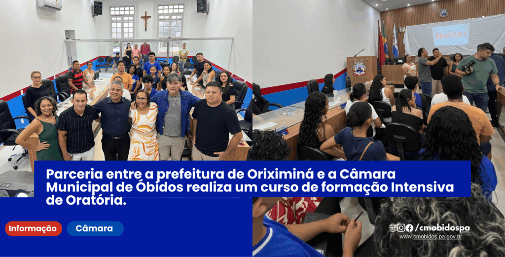Parceria entre a prefeitura de Oriximiná e a Câmara Municipal de Óbidos realiza um curso de formação Intensiva de Oratória. O evento reúne participantes que buscam desenvolver a arte de se comunicar com clareza, segurança e impacto, habilidades fundamentais não apenas para o ambiente político, mas também para a vida profissional e pessoal. Durante o curso, os inscritos mergulham em técnicas modernas de expressão verbal e corporal, aprendem a conduzir discursos de forma envolvente e a dominar o nervosismo diante do público, sempre com a orientação de especialistas capacitados. É um momento de aprimoramento que fortalece lideranças, valoriza a boa comunicação e incentiva o protagonismo cidadão dentro do município. O curso reforça a importância da palavra como instrumento de transformação, destacando que falar bem não é apenas uma habilidade, mas sim um poder que abre portas e conecta pessoas.