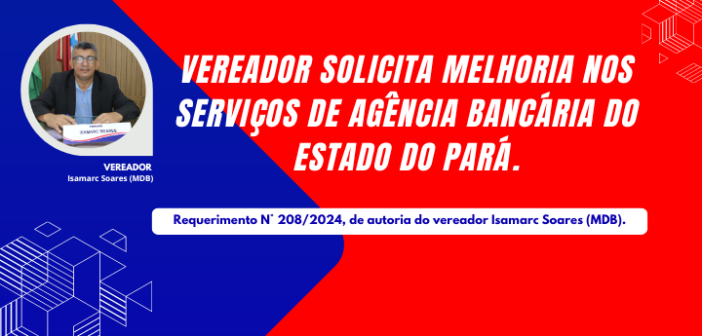 VEREADOR SOLICITA MELHORIAS NOS SERVIÇOS DE AGÊNCIA BANCÁRIA DO ESTADO DO PARÁ.